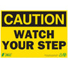 ZING Eco Safety Sign "CAUTION WATCH YOUR STEP" communicates critical messages that inform of designated areas and important safety precautions. Sign is made from high quality 70% post-consumer recycled plastic that is UL Validated for recycled content which substantiates material compliance with various green codes, standards, and procurement policies including the LEED Green Building Rating System, IgCC, GSA Advantage, ASHRAE 189.1 and others. Recycled material supports sustainability initiatives and LEED credits. Sign measures 10"H x 14"W and includes 4 mounting holes and adhesive tabs. Made in the USA.