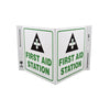 ZING Eco Safety V Sign "FIRST AID" communicates critical safety messages on two sides with a 180-degree view that significantly increases visibility of information. Sign is made from high quality 70% post-consumer recycled plastic that is UL Validated for recycled content which substantiates material compliance with various green codes, standards, and procurement policies including the LEED Green Building Rating System, IgCC, GSA Advantage, ASHRAE 189.1 and others. Recycled material supports sustainability initiatives and LEED credits. Sign measures 7"H x 12"W, Projects 5 Inches and includes 2 mounting holes and adhesive tabs. Made in the USA.