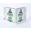 ZING Eco Safety V Sign "FIRST AID STATION" communicates critical safety messages on two sides with a 180-degree view that significantly increases visibility of information. Sign is made from high quality 70% post-consumer recycled plastic that is UL Validated for recycled content which substantiates material compliance with various green codes, standards, and procurement policies including the LEED Green Building Rating System, IgCC, GSA Advantage, ASHRAE 189.1 and others. Recycled material supports sustainability initiatives and LEED credits. Sign measures 7"H x 12"W, Projects 5 Inches and includes 2 mounting holes and adhesive tabs. Made in the USA.
