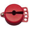 ZING RecycLockout Gate Valve Lockout is designed to cover and secure valve handles from being operated and releasing dangerous pressure. Lockout is high visible red and fits 2.5" - 5" valves and is designed to accommodate 3 padlocks with shackles up to 3/8" diameter. Lockout is made from heavy-duty 100% recycled polycarbonate that is UL Validated and supports sustainability initiatives and LEED credits. Lockout measures 1-3/4"H x 5-3/4" diameter. Made in the USA.