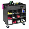 This unique cart combines the storage capacity of multiple shelves with the utility of an open deck platform truck. All–welded construction with 12 gauge steel deck and shelves for optimum strength. Clearance between shelves is 12", overall height is 36". 2 swivel and 2 rigid 5" x 1–1/4" urethane casters with wheel brakes. Durable powder coated finish. Platform Size: 30" x 60". Shelf Size: 30" x 26.5". 1,200–lbs Capacity.