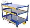 The adjustable ergonomic cart is the perfect asset to a number of facilities including shipping and handling to hospitality. A strong construction with a tall handle diminishes bending and twisting while loading and unloading products. The top two tiers can be adjusted in height with a simple pull of a pin to let larger sized products be transferred securely. The unit rolls on the users choice of glass-filled nylon or mold-on rubber casters for a smooth transition. MFG Part# AEC-3660-3-GFN