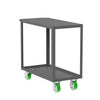 Valley Craft’s 36 x 18” 2-Shelf Utility Cart makes stocking, picking, and transporting products quick and efficient. Made from heavy duty 12 gauge steel and fully welded, this utility cart is the most durable on the market. Load capacity exceeds 2, lbs. and is built to hold up under the most strenuous conditions. The flat top is ideal loading and unloading oversized or heavy objects. All lower shelves contain a 1 1/2” lip to help keep less visible items secure during transport. A clearance of 26” between shelves on the 2-Shelf Utility Cart provides ample space for storing and moving a large range of products. Outfitted with (4) non-marking polyurethane casters (2 rigid, 2 swivel), these carts generate superior balance and control as you navigate your workspace. Cart is strategically designed at 36”L x 18”W x 36”H for optimal capacity and control. Cart is also equipped with an ergonomic push bar handle that extends an additional 4 1/2”. Valley Craft’s 2-Shelf Utility Carts have a powder coat paint finish for a premium look that holds up over time. The premium blue color can aid in organizing work flows and supporting 5S initiatives. Products are shipped fully assembled, ready-to-use, and are made in the U.S.A.