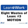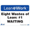 ZING Lean at Work Sign "Eight Wastes Defects" promotes Lean manufacturing and six sigma work practices in an eco-friendly way. Sign is made from high quality 70% post-consumer recycled plastic that is UL Validated for recycled content which substantiates material compliance with various green codes, standards, and procurement policies including the LEED Green Building Rating System, IgCC, GSA Advantage, ASHRAE 189.1 and others. Recycled materials support sustainability initiatives and LEED credits. Sign includes adhesive pads for easy mounting and measures 10"H x 14"W. Made in the USA.