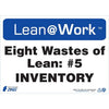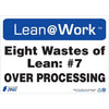 ZING Lean at Work Sign "Eight Wastes Overproduction" promotes Lean manufacturing and six sigma work practices in an eco-friendly way. Sign is made from high quality 70% post-consumer recycled plastic that is UL Validated for recycled content which substantiates material compliance with various green codes, standards, and procurement policies including the LEED Green Building Rating System, IgCC, GSA Advantage, ASHRAE 189.1 and others. Recycled materials support sustainability initiatives and LEED credits. Sign includes adhesive pads for easy mounting and measures 10"H x 14"W. Made in the USA.