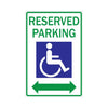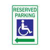 ZING Eco Parking Sign "RESERVED PARKING HANDICAP SYMBOL w/Left Arrow" creates organized and informative parking areas in an eco-friendly way. Sign is highly visible with 3M High Intensity Prismatic Reflective Sheeting and meets MUTCD Standards. Material is made from high quality 99% recycled .080 Aluminum (80% Post Consumer) that is UL Validated for recycled content which substantiates material compliance with various green codes, standards, and procurement policies including the LEED Green Building Rating System, IgCC, GSA Advantage, ASHRAE 189.1 and others. Recovered materials also exceed EPA's recommended content levels for signage and are EPA CPG Listed. Recycled materials support sustainability initiatives and LEED Certified Building Projects. Sign measures 18"H x 12"W and includes pre-drilled holes for easy mounting. Made in the USA.