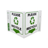 ZING Eco Recycle L Sign "PLEASE RECYCLE" communicates public messages on two sides with a 180-degree view that significantly increases visibility of information. Sign is made from high quality 70% post-consumer recycled plastic that is UL Validated for recycled content which substantiates material compliance with various green codes, standards, and procurement policies including the LEED Green Building Rating System, IgCC, GSA Advantage, ASHRAE 189.1 and others. Recycled material supports sustainability initiatives and LEED credits. Sign measures 7H x 2.5W, Projects 7 Inches and includes 2 mounting holes and adhesive tabs. Made in the USA.