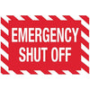ZING Eco Safety Sign "EMERGENCY SHUT OFF" is highly visible and effectively communicates equipment shut off controls to emergency responders and employees. Sign is made from durable high-impact recycled polystyrene self-adhesive that is resistant to solvents, moisture, scuffing and UV exposure as well as having high tear resistance. Recycled material is a minimum of 70% post-industrial and supports sustainability initiatives and LEED credits. Sign measures 10"H x 14"W. Made in the USA.