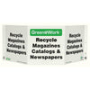ZING Green at Work Tri-View Sign "Plastic Only" with recycle symbol, encourages green recycle strategies and guides on where to deposit recyclable materials. Three-sided Tri-View Sign offers a 180-degree view giving improved visibility. Sign is made from high quality 70% post-consumer recycled plastic that is UL Validated for recycled content which substantiates material compliance with various green codes, standards, and procurement policies including the LEED Green Building Rating System, IgCC, GSA Advantage, ASHRAE 189.1 and others. Recycled material supports sustainability initiatives and LEED credits. Sign includes pre-drilled holes and self adhesive pads for easy mounting and measures 7-1/2"H x 20"W and projects 5 inches. Made in the USA.