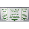 ZING Standard 3-Sided TriView Sign "HAND WASH STATION" communicates public messages with a 180-degree view that significantly increases visibility of information. Sign is made from high quality 70% post-consumer recycled plastic that is UL Validated for recycled content which substantiates material compliance with various green codes, standards, and procurement policies including the LEED Green Building Rating System, IgCC, GSA Advantage, ASHRAE 189.1 and others. Recycled material supports sustainability initiatives and LEED credits. Sign measures 7.5"H x 20"W, Projects 5 Inches and includes 2 mounting holes and adhesive tabs. Made in the USA.