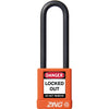 ZING RecycLock Padlock is keyed different and includes one key that is unique and can only be used with that padlock. Padlock features a solid aluminum body with fully insulated protective covering for increased safety and corrosion resistance. Precision 6-pin cylinder has key-retaining and auto-locking functions. Lock is made from high quality 70% recycled materials that is UL Validated for recycled content which substantiates material compliance with various green codes, standards, and procurement policies including the LEED Green Building Rating System, IgCC, GSA Advantage, ASHRAE 189.1 and others. Padlock contains no PVC and uses food industry approved lubricants. Lock body is orange with trilingual label and measures 3" Length x 1-1/2" Wide. Steel shackle measures 1-1/2" Length x 1/4" dia.