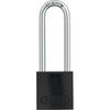 ZING Aluminum Padlocks are designed to support OSHA Lockout requirements and prevent energization of equipment that could harm employees during servicing. Padlock body is made of lightweight premium aluminum that is non-sparking and non-magnetic and shackle is made from hardened alloy steel with protective plating for extreme corrosion resistance. Padlock uses high content recycled material that is UL Validated for recycled content which substantiates material compliance with various green codes, standards, and procurement policies including the LEED Green Building Rating System, IgCC, GSA Advantage, ASHRAE 189.1 and others. Padlocks are keyed different and include two keys per lock. Padlocks feature precision 6-pin cylinder for maximum key difference. Lock body is black and measures 1-9/16†H x 1-1/2â€W x 3/4â€D, Shackle length is 1.5".