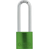 ZING Aluminum Padlocks are designed to support OSHA Lockout requirements and prevent energization of equipment that could harm employees during servicing. Padlock body is made of lightweight premium aluminum that is non-sparking and non-magnetic and shackle is made from hardened alloy steel with protective plating for extreme corrosion resistance. Padlock uses high content recycled material that is UL Validated for recycled content which substantiates material compliance with various green codes, standards, and procurement policies including the LEED Green Building Rating System, IgCC, GSA Advantage, ASHRAE 189.1 and others. Padlocks are keyed different and include two keys per lock. Padlocks feature precision 6-pin cylinder for maximum key difference. Lock body is green and measures 1-9/16†H x 1-1/2â€W x 3/4â€D, Shackle length is 1.5".