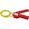 Gate Valve Lockout fits handle diameters from 5'' to 6.5''. The lockout will accommodate up to 3 padlocks with a max shackle diameter of 3/8". Includes the legend "DANGER Do Not Remove." The lockout is made from durable plastic and will withstand temperatures from -20 to 200 F.