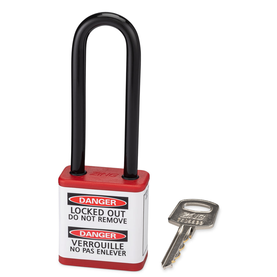 Lockout Safety Padlock, 700 Series, 3" Shackle, Keyed Different, Red
